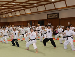 楊進理事長をお招きして、指導者研修会が開催されました。例年になく記録的猛暑にも拘わらず、150名の会員が参加され、進先生のユーモアと笑いの中、規範教程他、興味深い内容で意義ある楽しい研修会となりました。